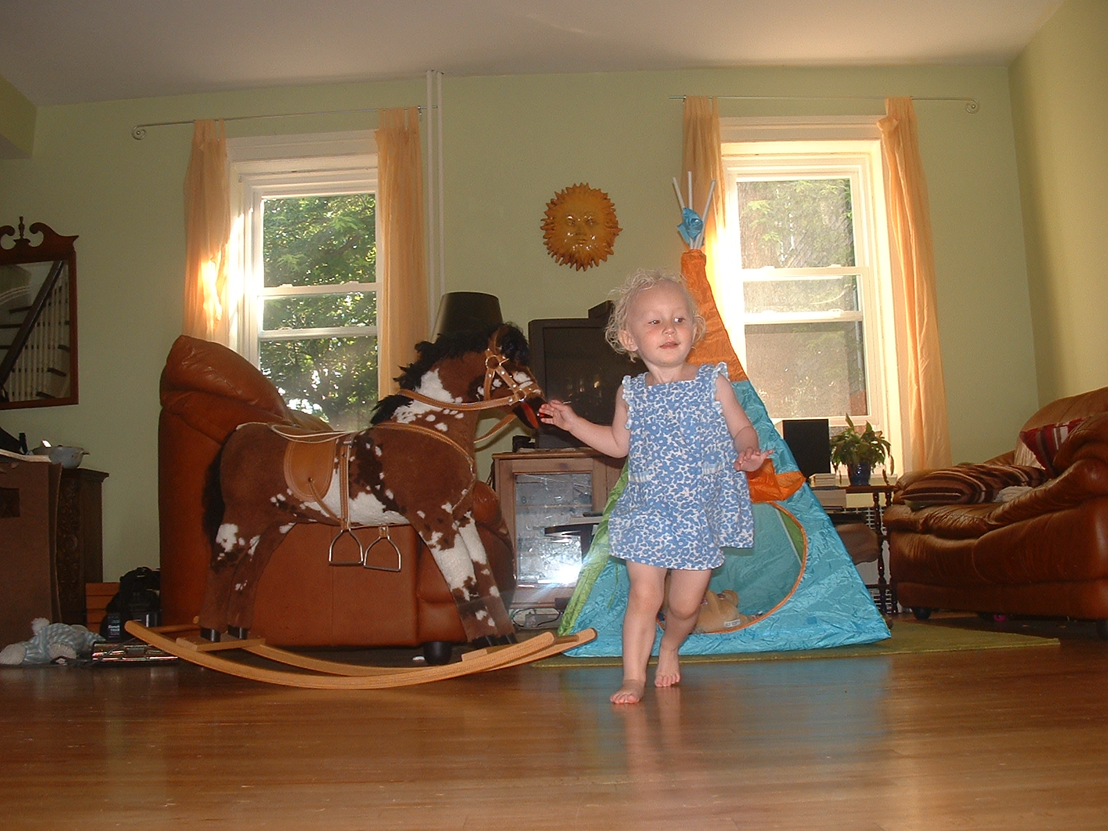When at nine months Jane first started to walk with assistance, I thought, “now I’ll see where she wants to go, where she’ll go when it’s up to her,” and it turns out she wants to walk from one end of the room to the other and back again. There is no “where to”. Walking was an end in itself. No destination needed.