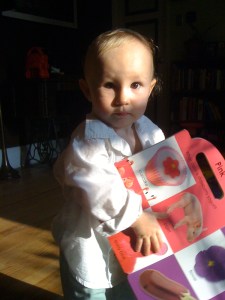 Jane has other games—she likes to flip the light switch to turn the lights on and off. She gets pleasure in manipulating her world, participating, making things happen. Except she doesn’t just flip the switch. She reaches out her fingers to it, then looks at me and waits until I shake my head, “no, Jane, no! don’t do it!” Then she laughs and flips the switch.