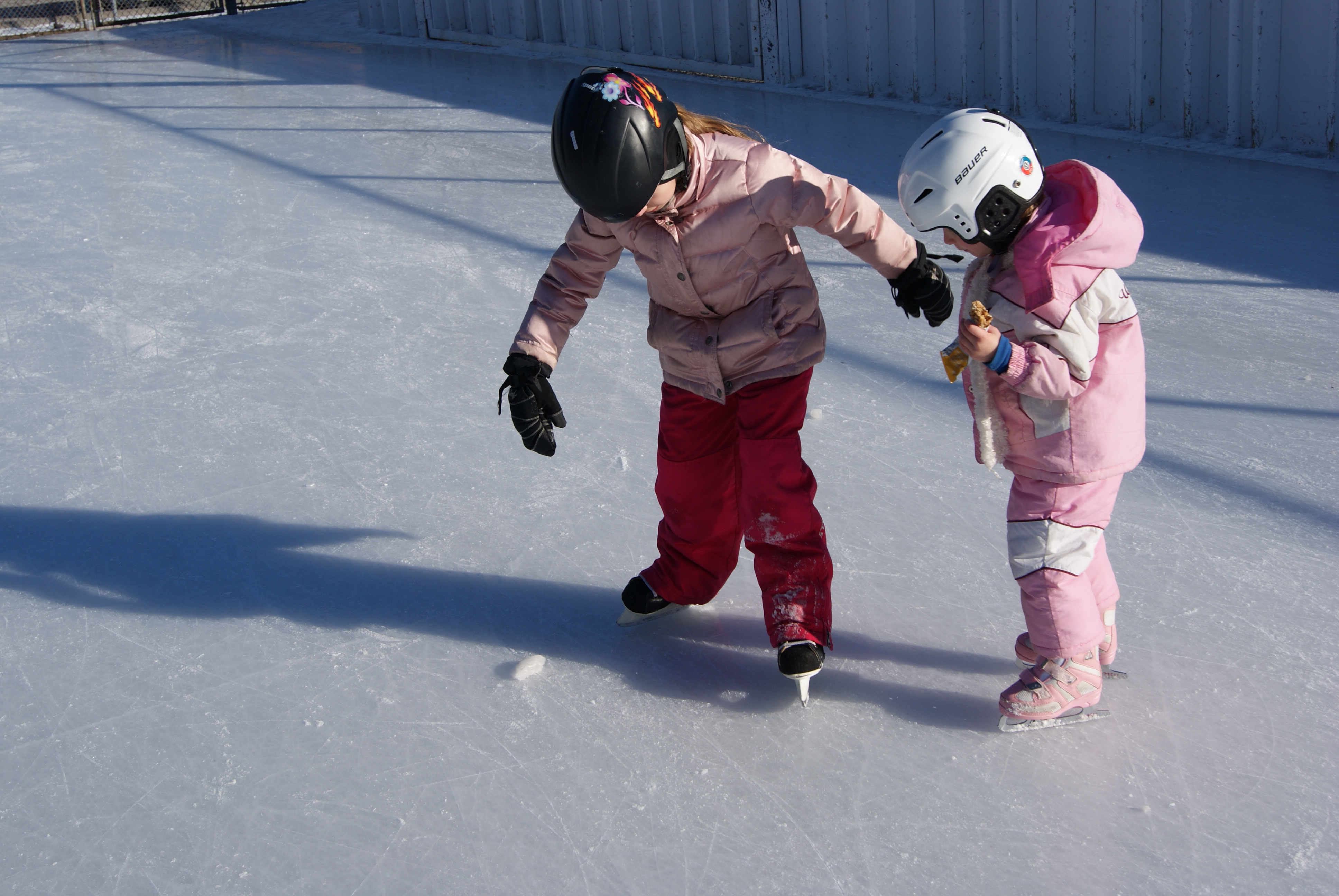 Pictures of Jane on ice, her first time on Christmas Day, 2012, and then about six weeks later (having skated maybe 10 times).